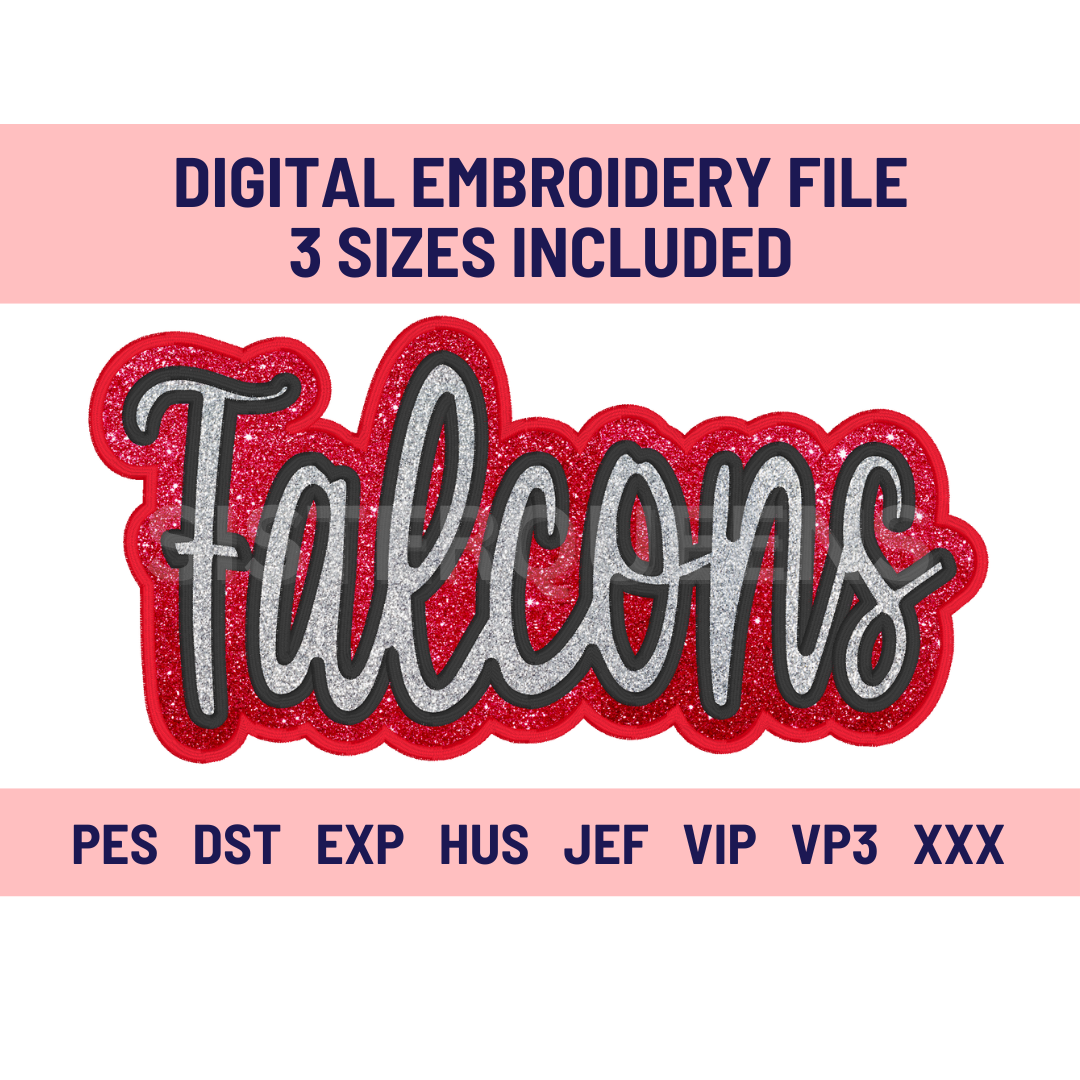 FALCONS-Digital Embroidery Applique file-Double Stacked for use with HTV