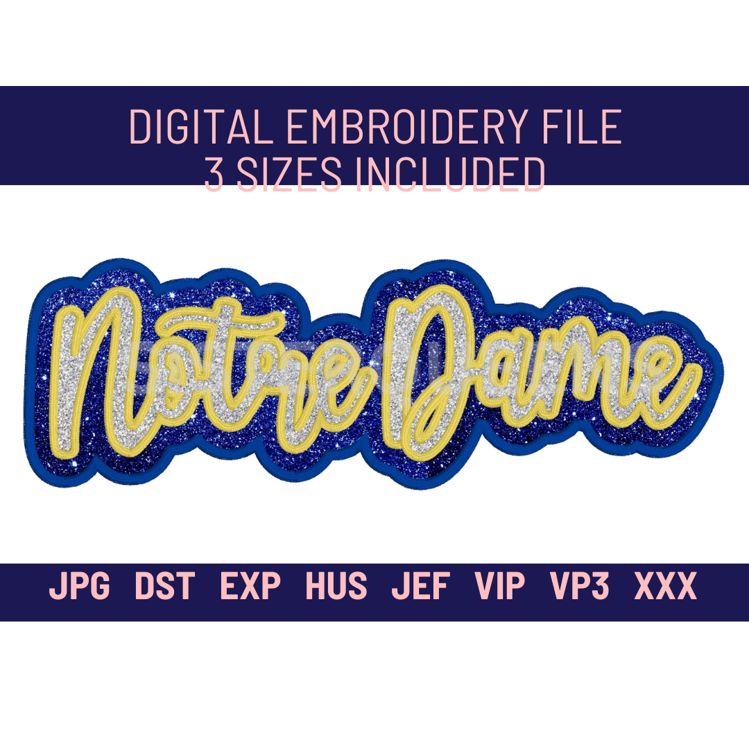 NOTRE DAME-Digital Embroidery Applique file-Double Stacked for use with HTV