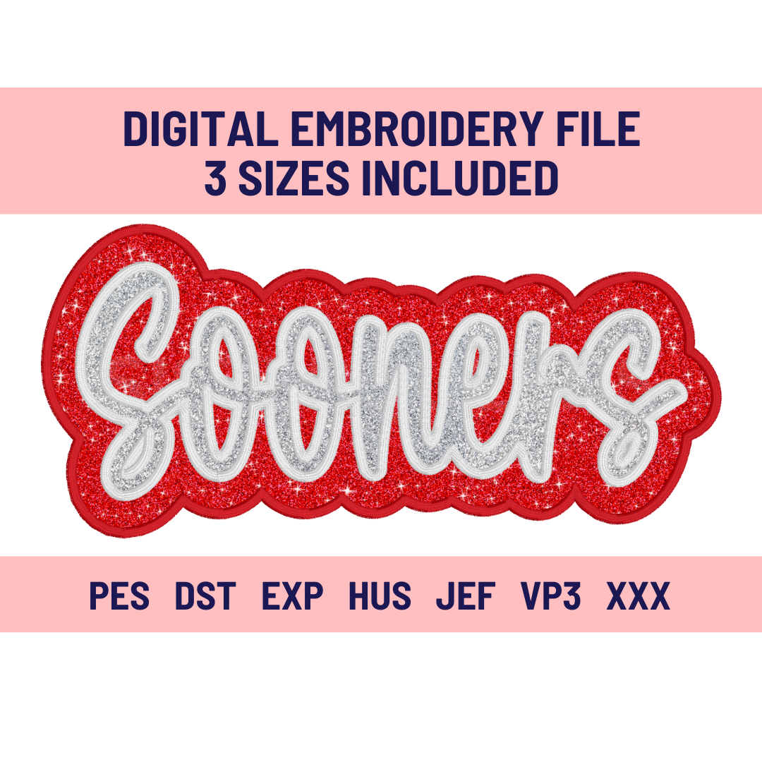 SOONERS-Digital Embroidery Applique file-Double Stacked for use with HTV